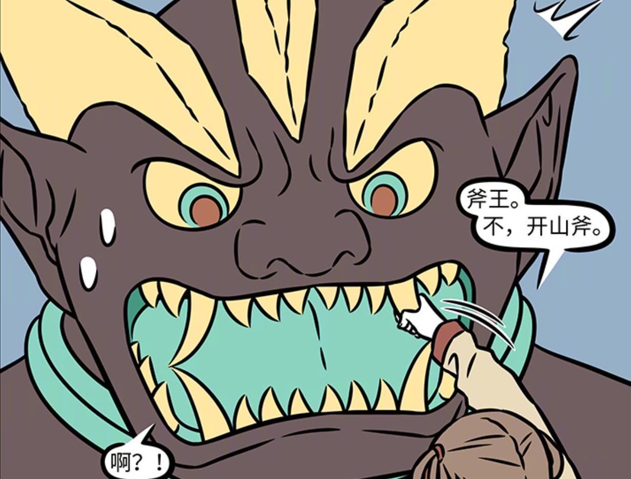 很快斧王就發現,自己的牙齒被少年緊緊抓住,少年十分具有氣勢地叫出了開山斧的真名