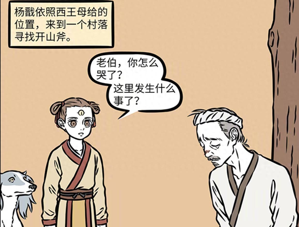 很快楊戩救依照西王母給出的位置來到一個村落,在這個村落裏看到一個形容憔悴的老人正坐在樹下面哭泣,熱心的楊戩連忙走上前去查看老人的情況,詢問老人爲什麼哭泣,這裏又發生了什麼事情
