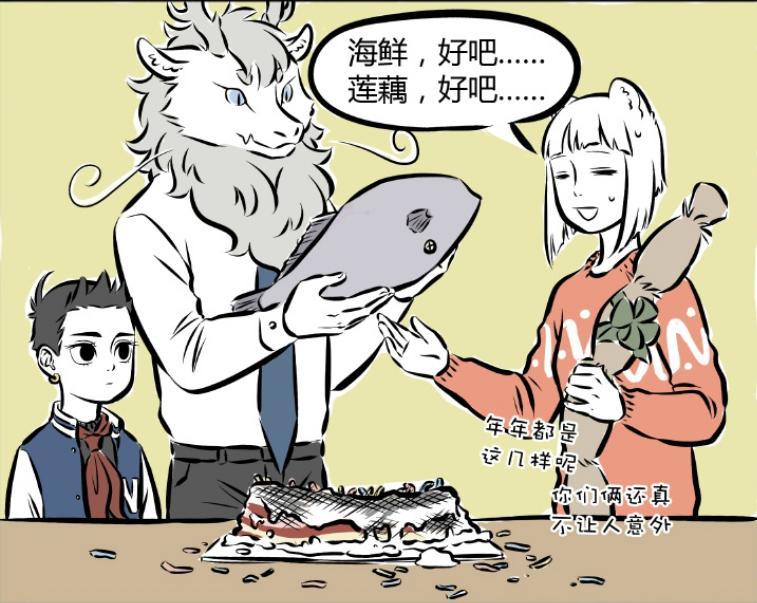 敖烈贈送的禮物是海鮮,哪吒贈送的則是蓮藕,看着兩人每年都如出一轍的禮物,九月只能一臉無奈地收下,當然心裏面卻忍不住吐槽兩人每年的禮物都不讓人意外啊,每年都是一樣的