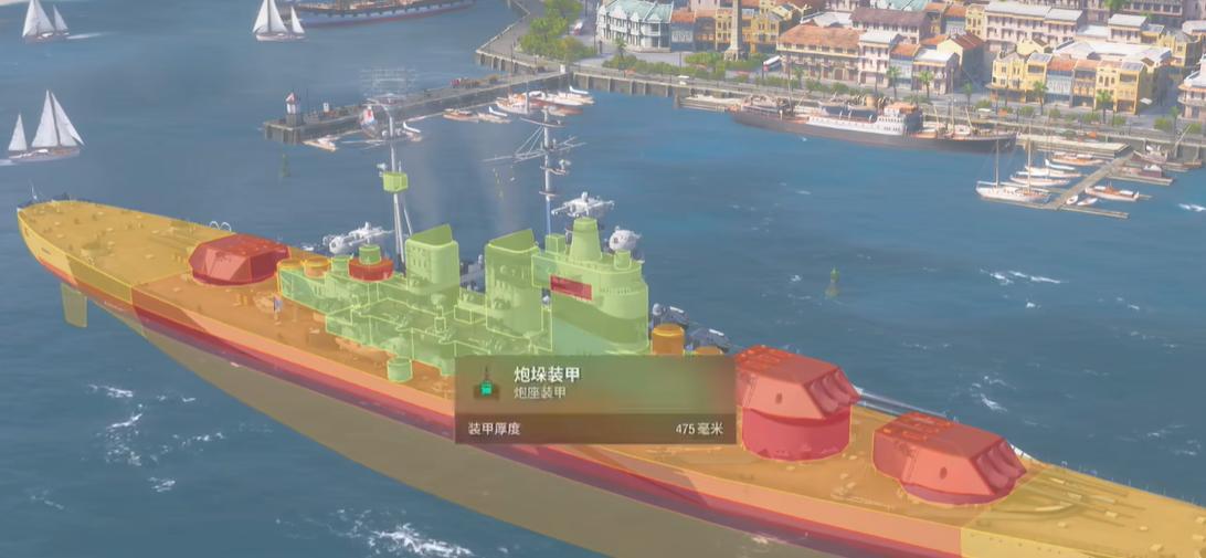 先看船體參數,西伯利亞有着108300的血量,在同級戰列艦裏相當紮實;46%的防雷、13.39的水隱和8.1的空隱,生存能力不俗;29.5節的航速,轉向半徑1090、推重比3.41,機動性也過得去。至於防護,它有着150mm上裝、410mm主裝、60mm頭尾,與克里姆林相比,其甲板厚度從60mm降至40mm,但實際防護能力依舊強勁,足以扛住大部分火力。