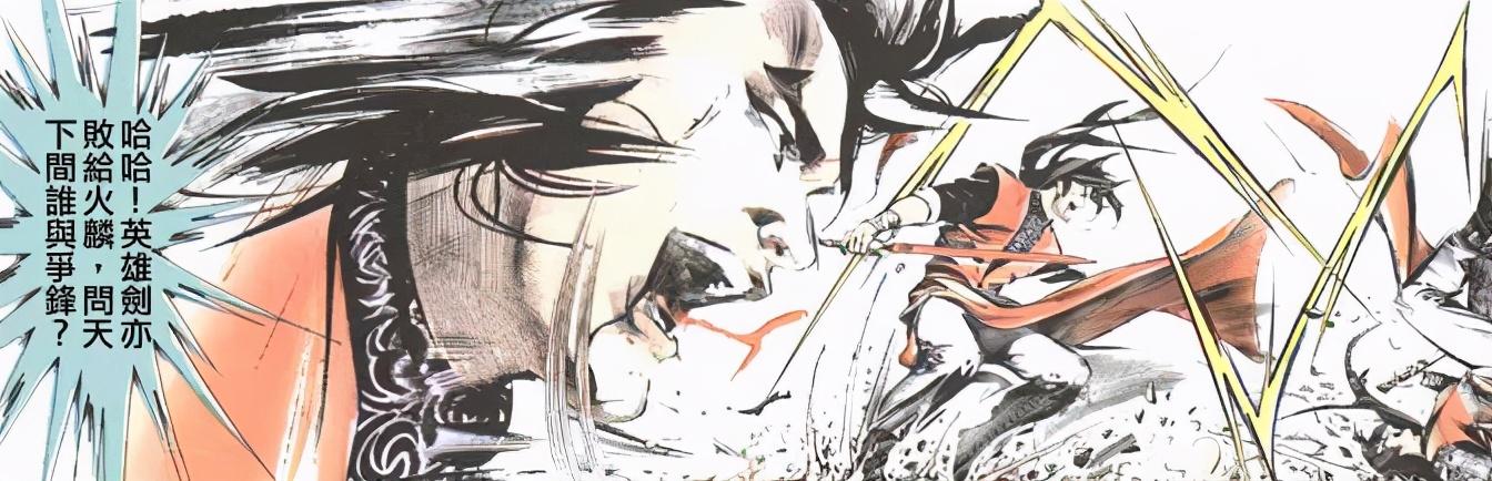 火麟劍是《風雲》漫畫最早亮相的神兵之一——早在第一話聶人王尋斷帥決戰時,它便已登場。彼時的火麟劍可謂牌面十足,與步驚雲的雪飲刀並稱“江湖雙絕”,民間更有“南山巔上火麟烈,北海潛深雪飲寒”的說法,足見其地位之高。