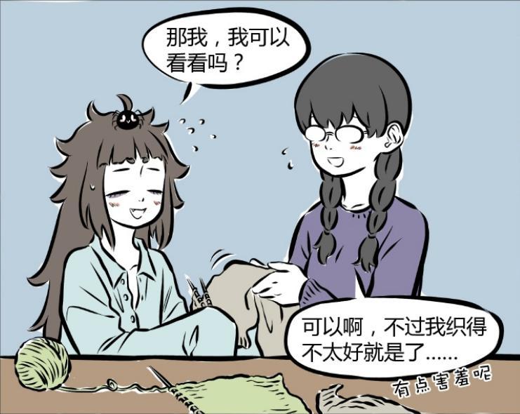 《非人哉》故事中的蜘蛛精妥妥的內向小女孩,甚至有點討好型人格,爲此小蜘蛛精決定上針織課,畢竟上針織課有不少女生,小蜘蛛精應該可以趁着上課的間隙結交很多好友