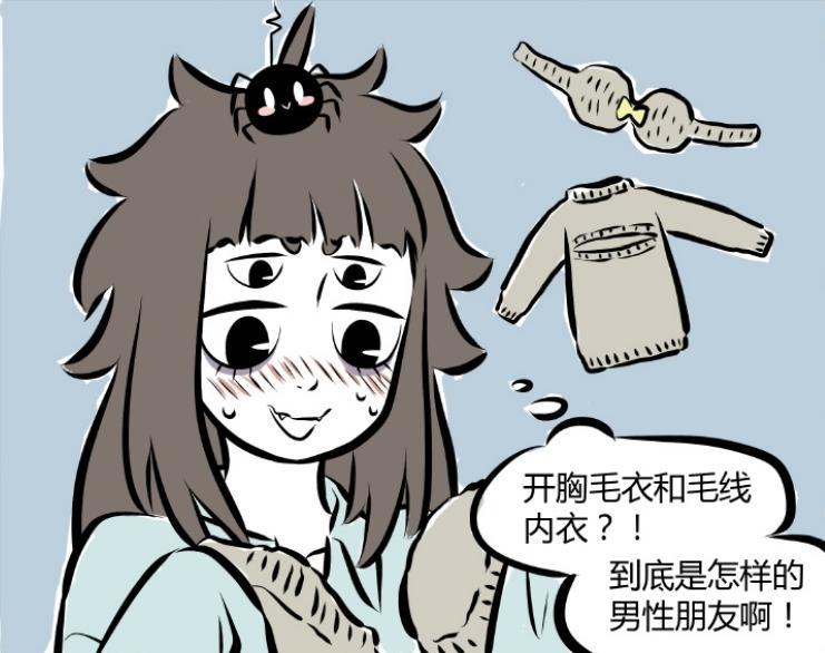 原本小蜘蛛精也只是客套詢問,但看到雙馬尾眼鏡女織出來的衣服,瞬間呆愣住,畢竟她實在想不出,究竟是什麼男性朋友會穿這樣的衣服。