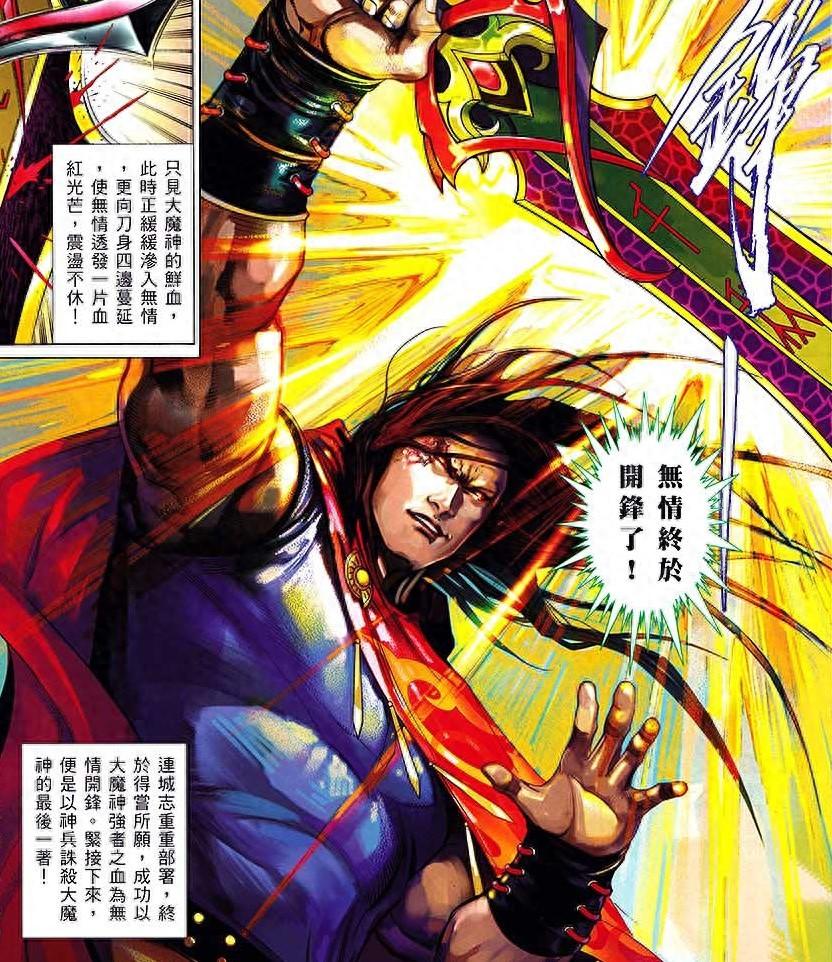 在《風雲》設定中,“血啓”往往決定神兵靈性與潛力,而大魔神作爲近乎創世級的存在,其血液蘊含毀天滅地的力量。以此爲引,使無情刀自誕生起便具備吞噬萬物、逆亂乾坤的潛能。