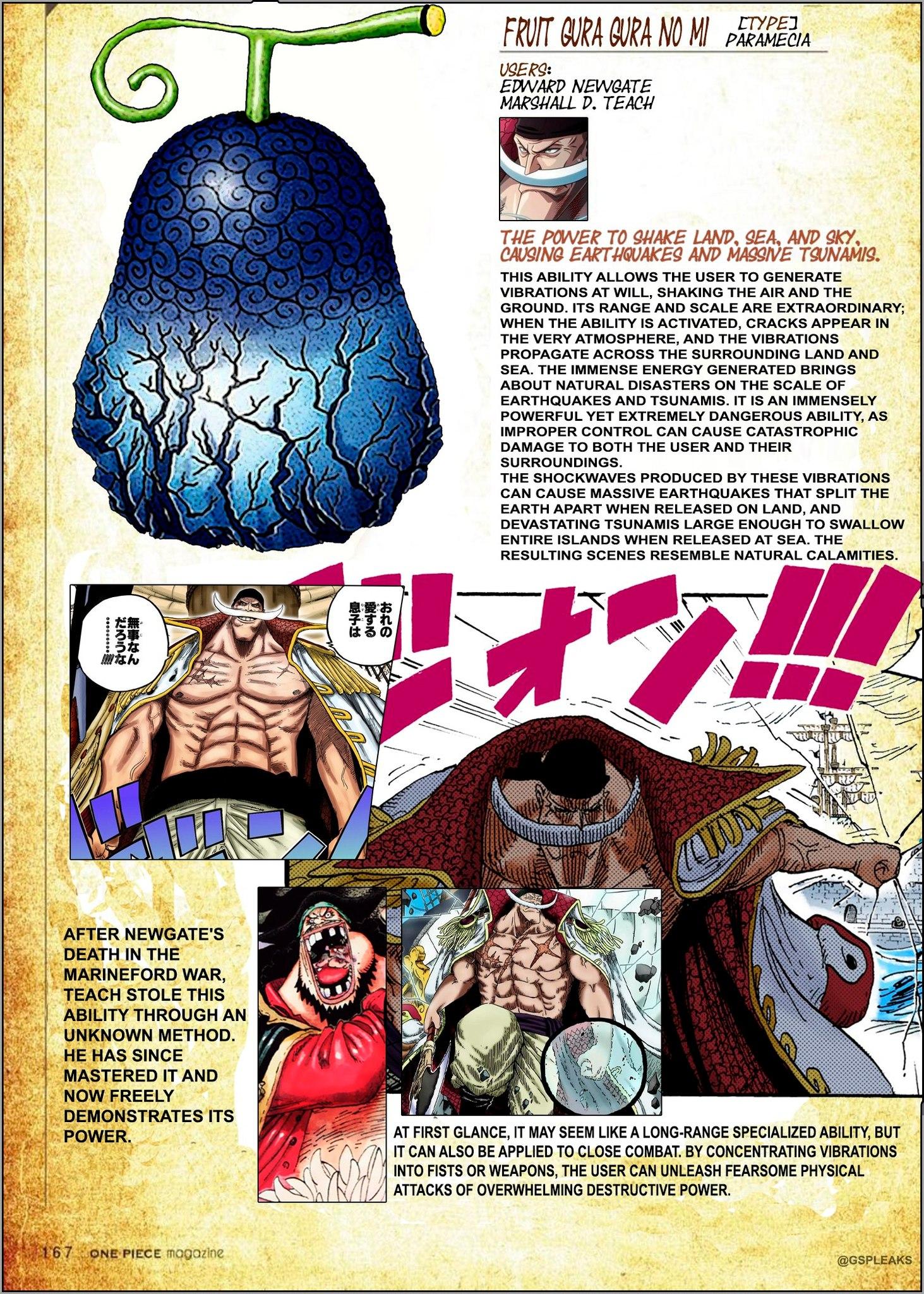 震震果實極其強大,足以毀滅世界!而尾田還是對它進行了削弱,不將它歸類是自然系,成爲超人系!但也是超人系中最強大的存在!如今震震果實被黑鬍子所得,加上自然系暗暗果實,黑鬍子非常棘手,路飛又要如何才能擊敗他呢!?