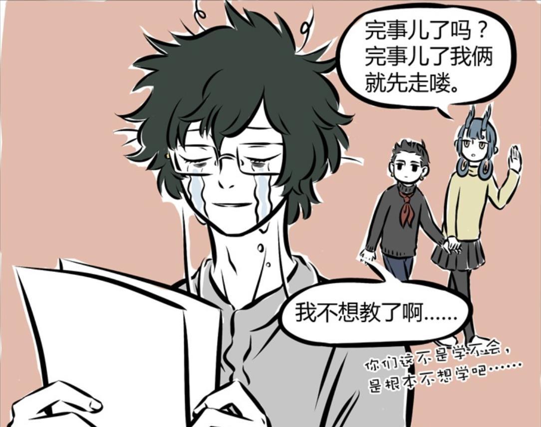 看到兩人的翻譯試卷,白澤忍不住流下難過的眼淚,想要徹底放棄教兩人學英語,畢竟從兩人的回答情況白澤感覺到這兩人不是學不會,是壓根就不想學。