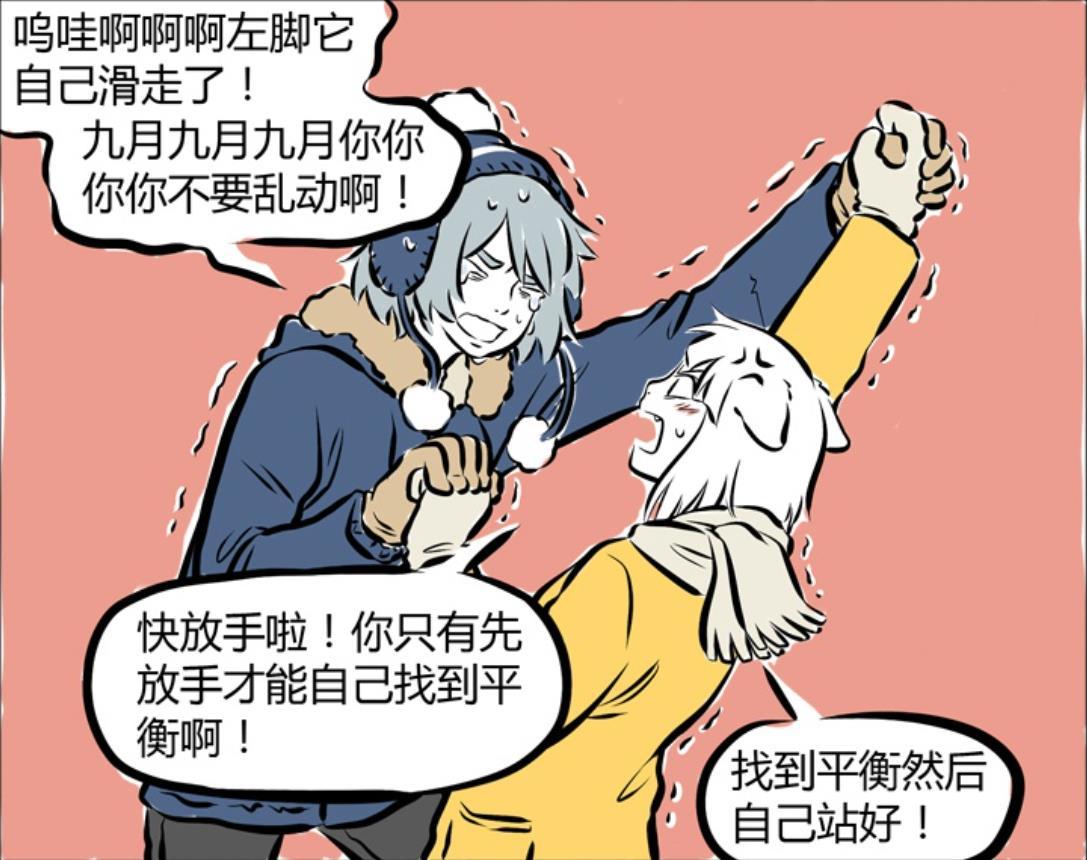 在之前的故事中, 哮天想要學習旱冰,可惜自己一個人不得要領,直接把旱冰變成了雜耍,這一幕也被九月看到,作爲旱冰高手且還是哮天的好友,九月自然而然承擔起教會哮天的任務,開始嘗試指導哮天正確旱冰