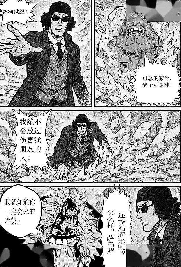 之前還以爲是山治來救薩烏羅啊,但沒想到居然是他之前的朋友,是前任海軍大將青雉,如今是黑鬍子海賊團第十號船長。但青雉來到這裏也是執行任務的,只是沒想到薩烏羅居然沒死,還居住在艾爾巴夫,簡直是難以置信。