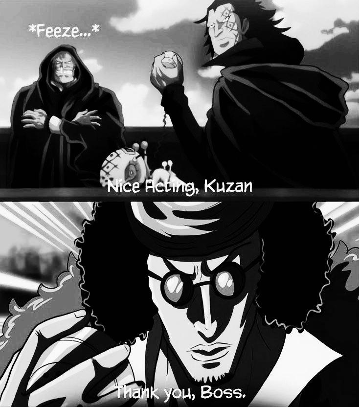 卡普雖然被關押在蜂巢島,但青雉並非敵人!他其實是革命軍的臥底,爲了計劃不得不先站在黑鬍子這邊!可自己的老師身負重傷,他必然要聯繫龍,然後快速將其救治,等待一個時機,將卡普解救出去。