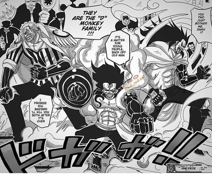 最終我們看到了卡普、龍、路飛他們三代人齊聚一堂,攜手激戰伊姆大人!這一幕簡直是前所未見啊!彷彿就是38年前在神之谷,洛克斯、白鬍子、凱多面對凱多一樣的場景!