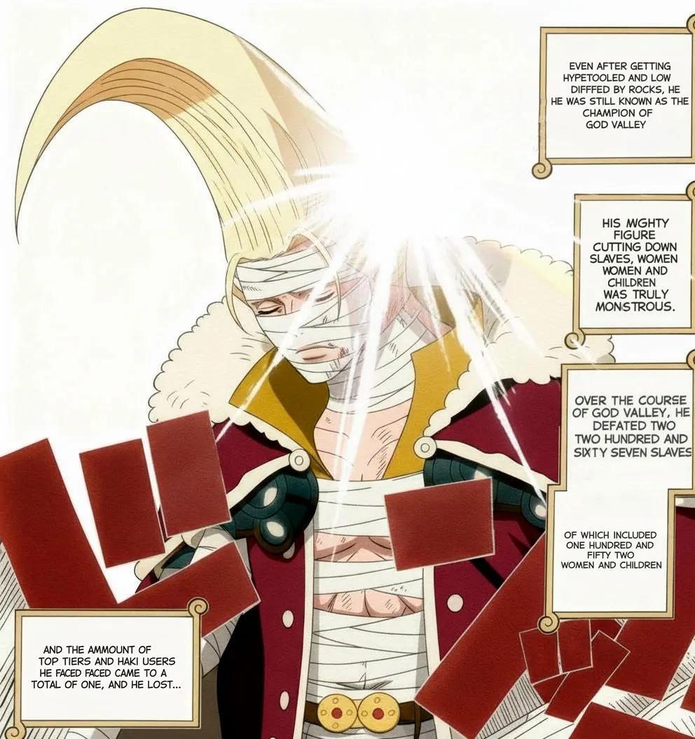 神之谷的真相還沒公佈時,出現在瑪麗喬亞的加林聖有着亮眼的榮譽稱號,是神之谷的王者!當時有很多人都在吹加林聖有多麼厲害,是給白鬍子留下傷疤的男人,戰鬥力超越海軍大將。可結果呢?原來是路邊的一條gou。