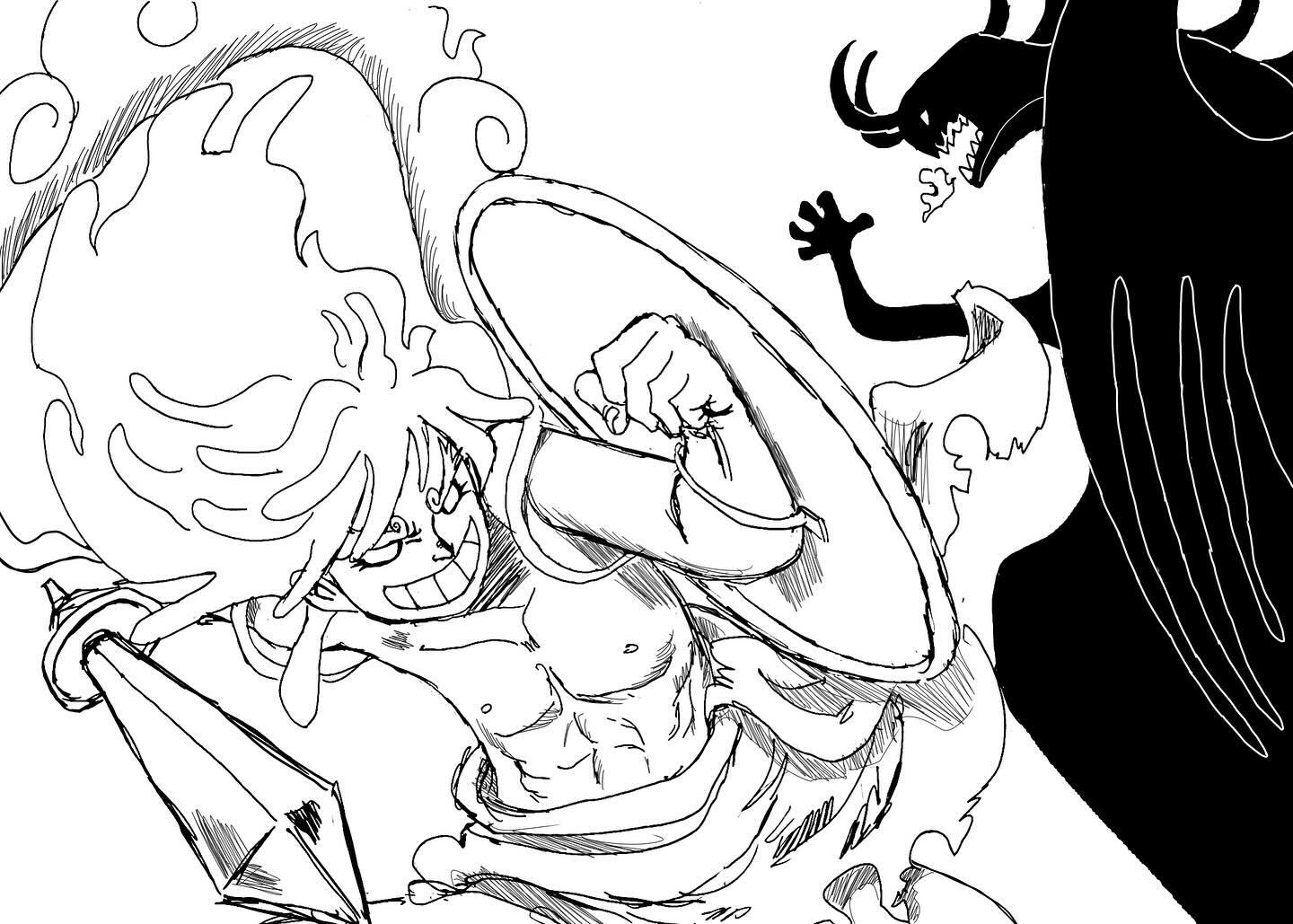 喬伊波伊附身在路飛身上,開啓尼卡形態和伊姆血戰。