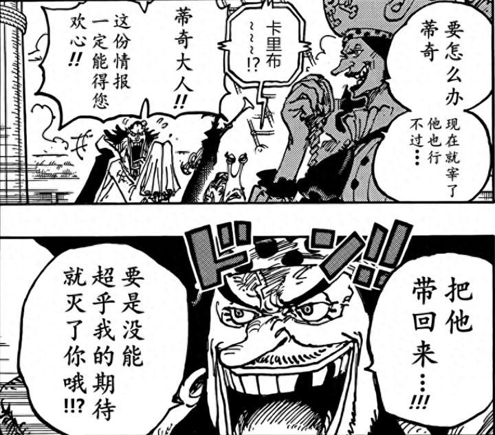 好傢伙!卡里布知曉了有2條古代兵器的下落,那擺明了是爲了告訴黑鬍子啊!所以纔有了魚人島和和之國的劇情故事!尾田通過這個方式,讓黑鬍子也去爭奪【古代兵器】。