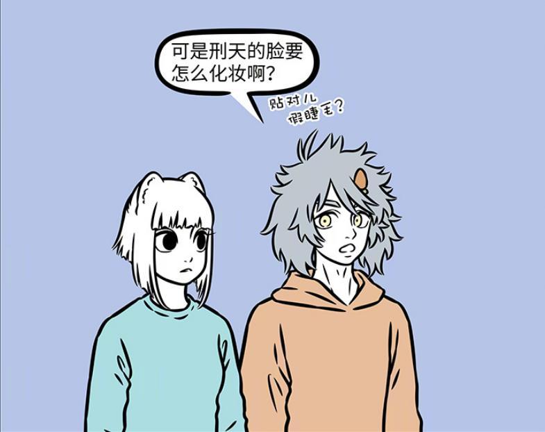 而很快哮天就有一個疑惑,大部分時候化妝都是針對臉部化妝,刑天沒有頭要怎麼給他化妝,難道在他的肚子上面化妝嗎。