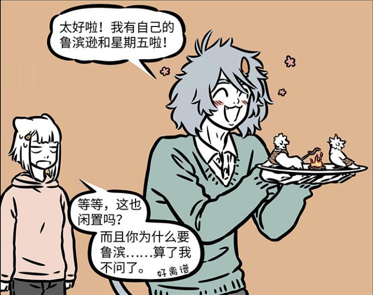 原本以爲他會被桌上的骨頭吸引,出乎預料的是他竟然選擇之前九月在倉庫中發現的魯濱遜和星期五,看着這兩隻鳥,哮天一臉愉悅。