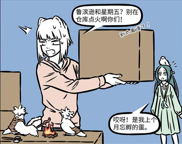 兩隻小鳥直接把倉庫當成了野外,在這裏過起了荒野求生的生活,關於荒野求生,自然免不了燒火,因此九月看到的第一瞬間就是讓他們不要再倉庫點火。