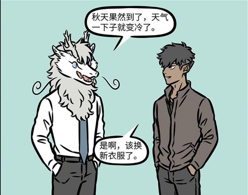 這天敖烈和玄武恰好碰面,敖烈感慨秋天果然到了,天氣一下子就變冷,玄武則附和表示確實如此,應該換一下新衣服。