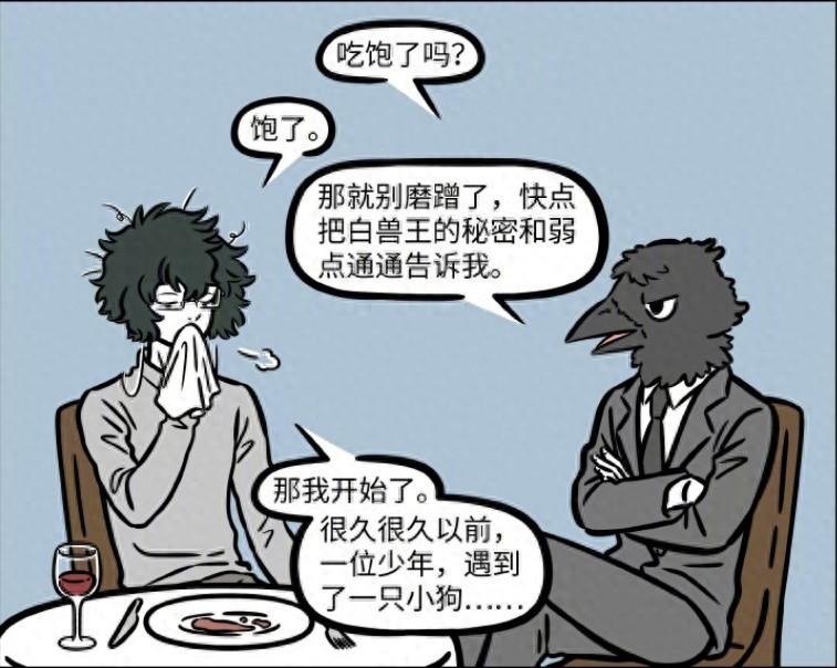 因爲有了之前的經歷,黑鳥王也沒辦法繼續打斷白澤的話,只能不停地用語氣詞暗示白澤講故事,肉眼可見的焦慮,很顯然比起少年和小狗的故事,黑鳥王還是更加關心白獸王