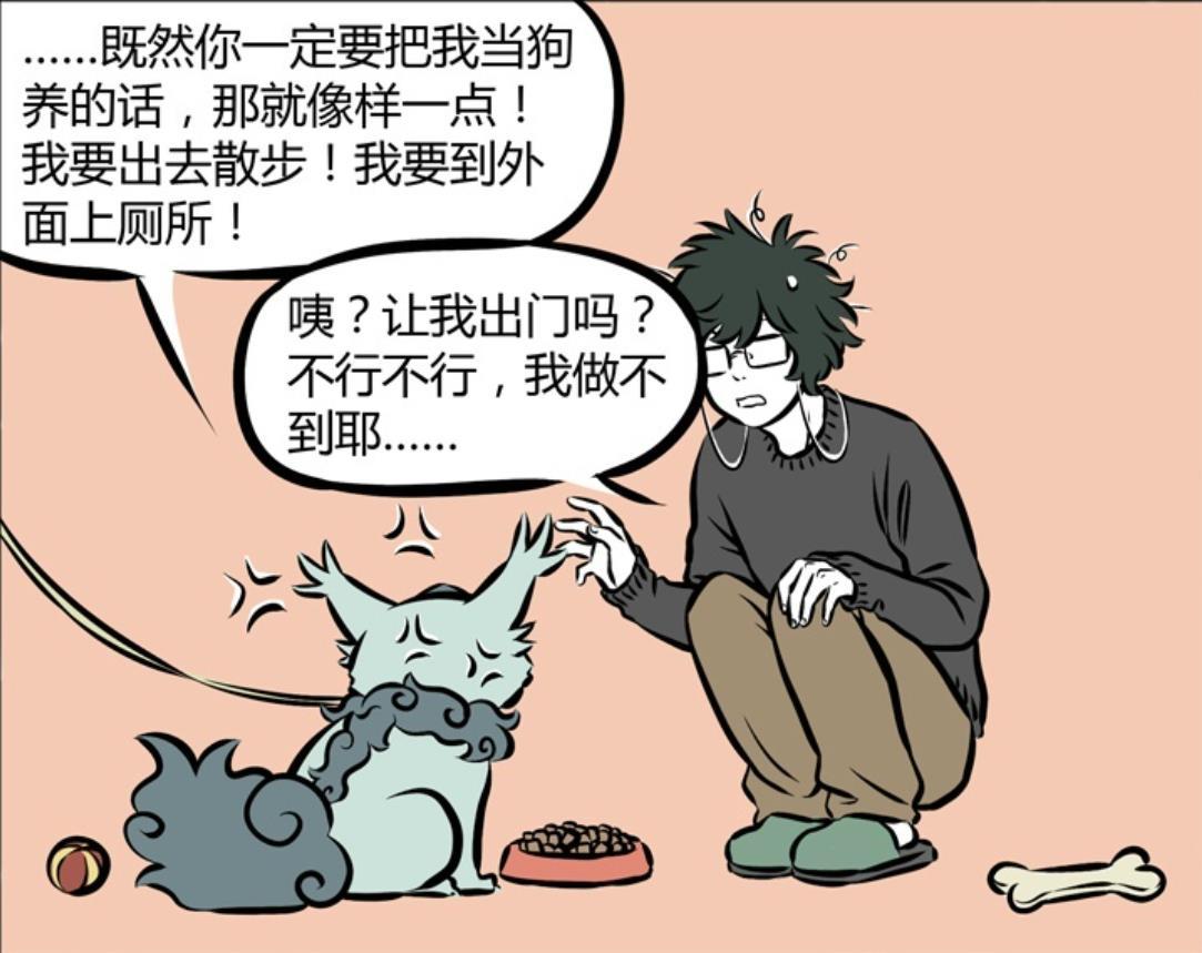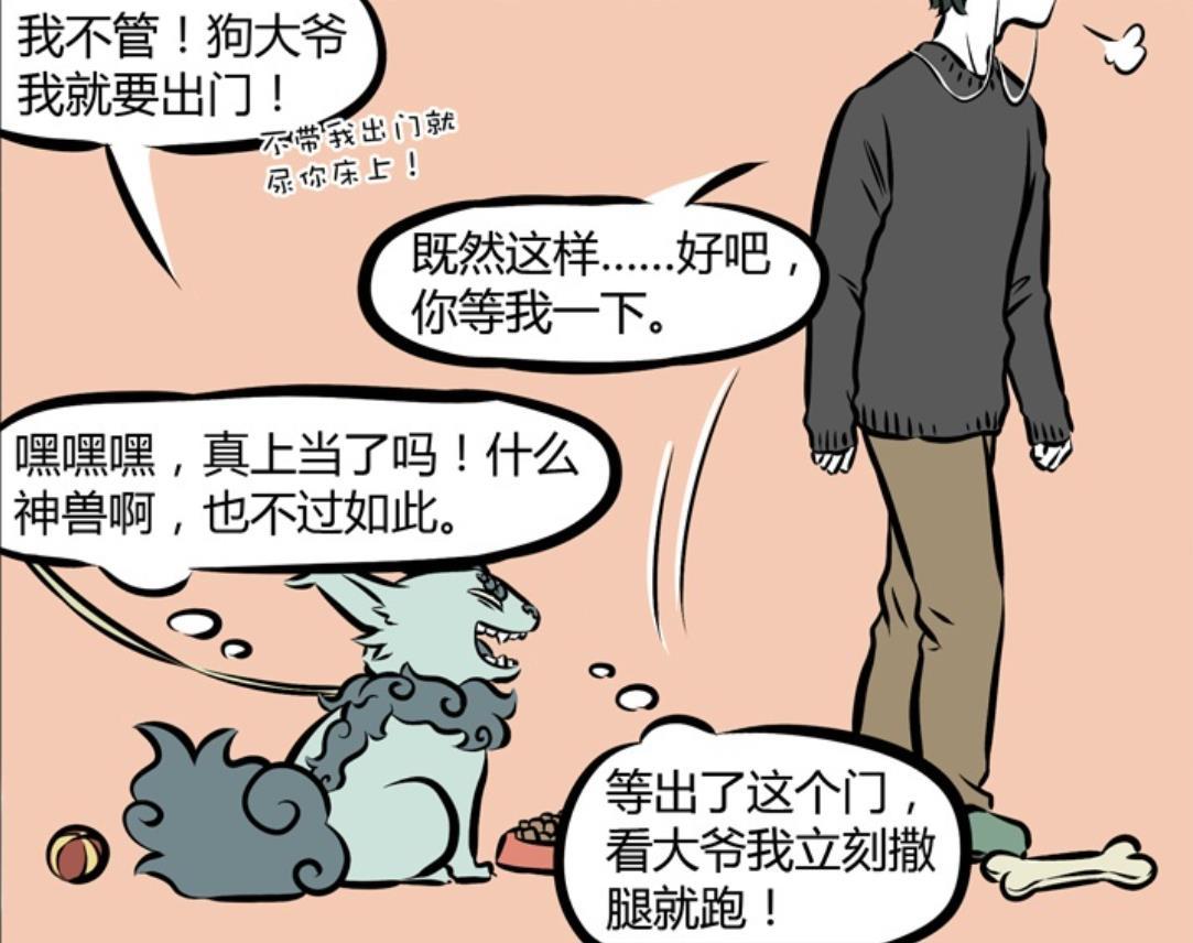 無奈之下,年獸只能選擇曲線救國的路線,表示既然白澤硬要把自己當成小狗,那就就想要像對待真正的小狗一樣,帶他出去散步,隨後更是白絲自己要到外面上廁所。