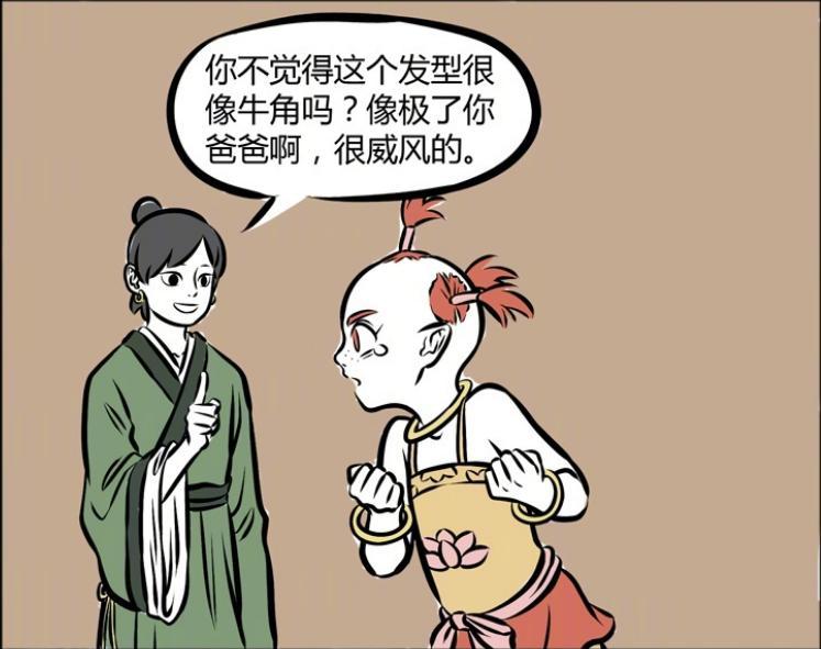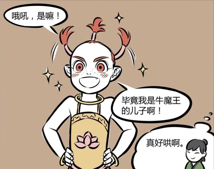 眼見紅孩兒因爲自己的笑聲險些要哭出來,木吒連忙表示紅孩兒不覺得自己這個髮型很像牛角嘛,就像他威風凜凜的父親牛魔王一樣