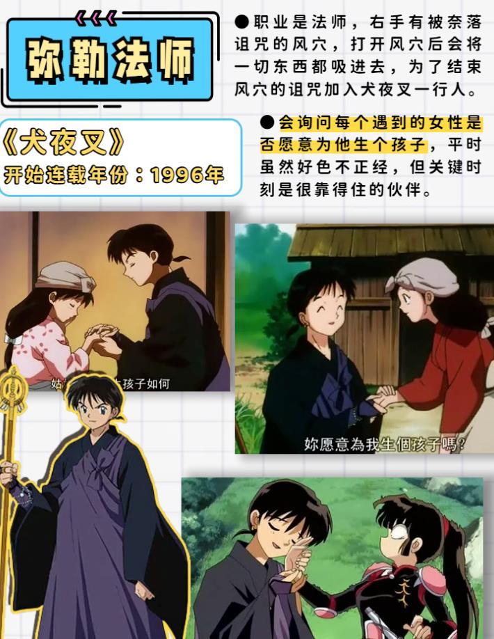 彌勒法師因爲奈落的詛咒,手上有一個可以吸收萬物的風穴,爲了解除風穴的詛咒,彌勒法師也加入犬夜叉小團隊,開始尋找奈落
