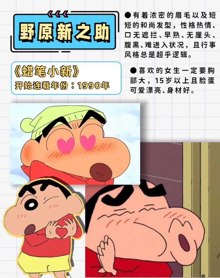 這種人設如果發生在一般角色上,不可避免會引起網友厭惡,但如果發生在五歲的小新身上就顯得十分有趣,也成了小新性格特點之一