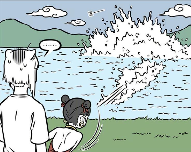 但還沒等九月說完,就看到哪吒拿起一塊巨大的石頭,表示要和九月玩點有意思,可以用這塊石頭去海邊打水漂