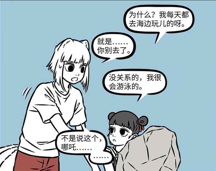 聽到哪吒的勸阻,哪吒十分好奇,畢竟自己每天都去海邊玩耍,很快哪吒意識九月是在擔心自己,連忙表示沒有關係,自己會游泳