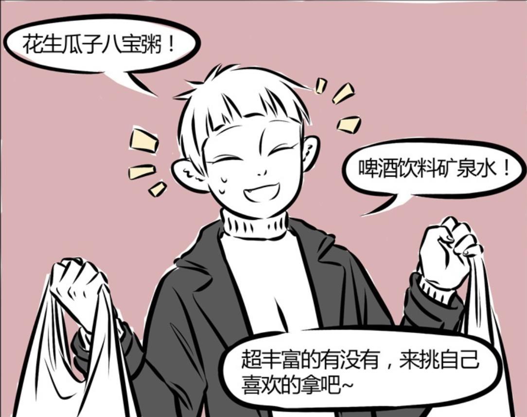 很快十一月就找到禮物,無一例外都是食物,分別有花生瓜子八寶粥,啤酒飲料礦泉水,隨後十一月更是表示品類超級豐富,小孩子們可以隨意選擇