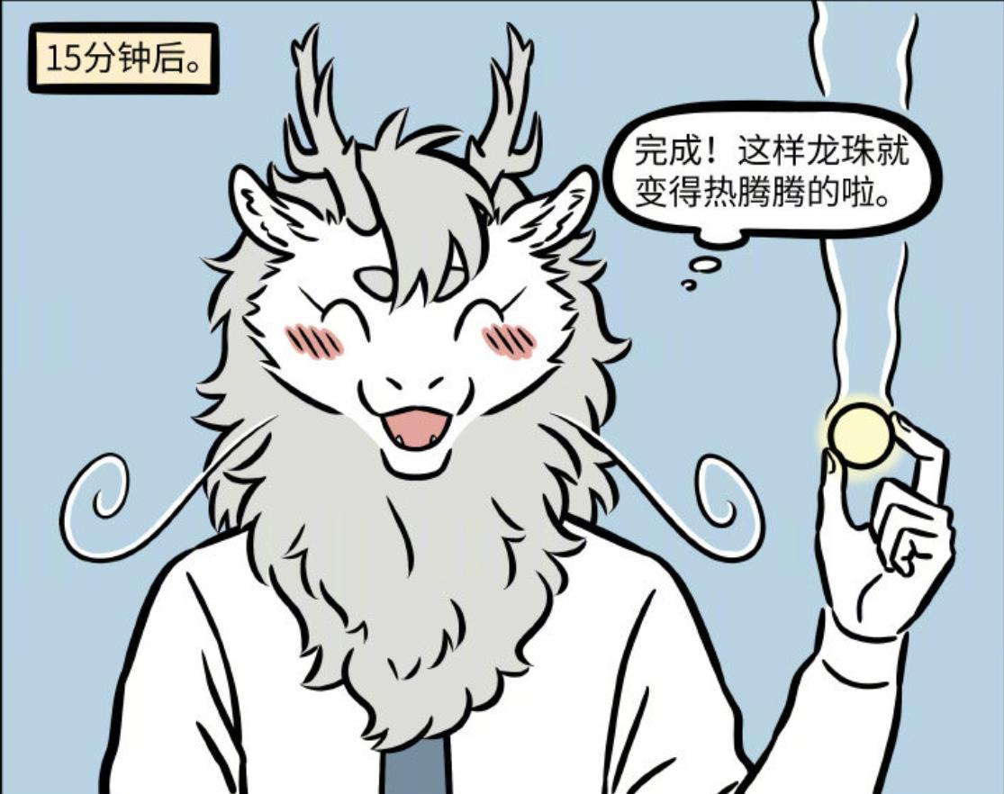 將龍珠放入自熱鍋後15分鐘,就可以將龍珠拿出來,這樣龍珠就能變成熱騰騰的龍珠了,此時的敖烈還一臉渾然未覺,肉眼可見的興奮。