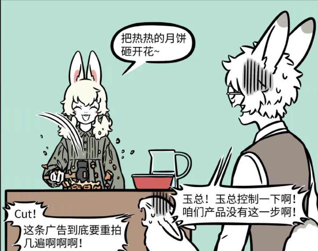 目睹這一幕的導演玉兔瞬間制止了小玉的舉動,一臉崩潰表示這條廣告到底要重拍幾次啊,很顯然這並不是小玉第一次在製作自熱月餅後將月餅徹底砸碎。