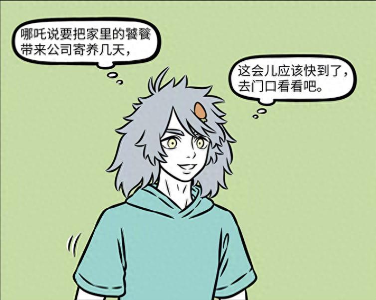 這天哪吒表示要把饕餮帶來大士公司寄樣幾天,因爲從沒有和饕餮接觸過,所以哮天十分好奇,整天都在想着饕餮即將到來的事情,最後更是直接到公司門口,準備去接饕餮