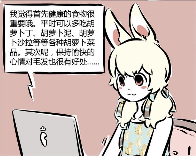小玉表示想要成爲萌妹子,首先就要喫健康的食物,比如各種胡蘿蔔製品,隨後就是要保持心情愉悅,畢竟只有心情愉悅,才能保持毛髮光滑順亮,讓本人的可愛指數直線飆升。