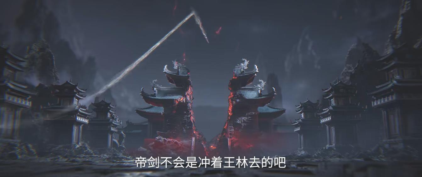 從先行預告中能夠看到,剛開始帝劍也只是把王林當成了殺氣幻化而出的人類,並沒有當回事,但是當帝劍察覺到王林吸收的殺氣,比自己還多,而且還傷到了自己,這讓帝劍非常的生氣,就宛如螻蟻反咬自己一口,帝劍直接開始強勢追殺王林。