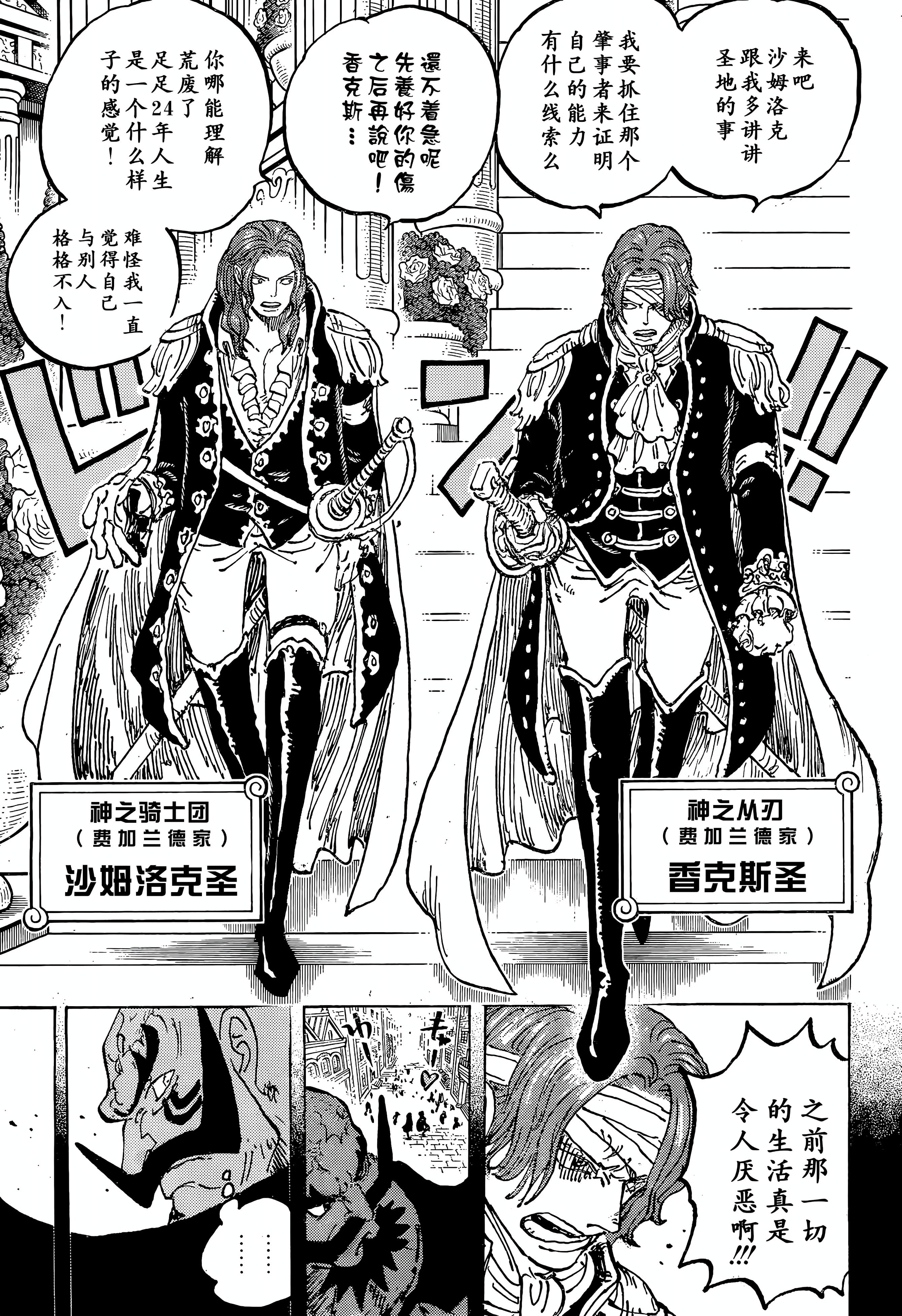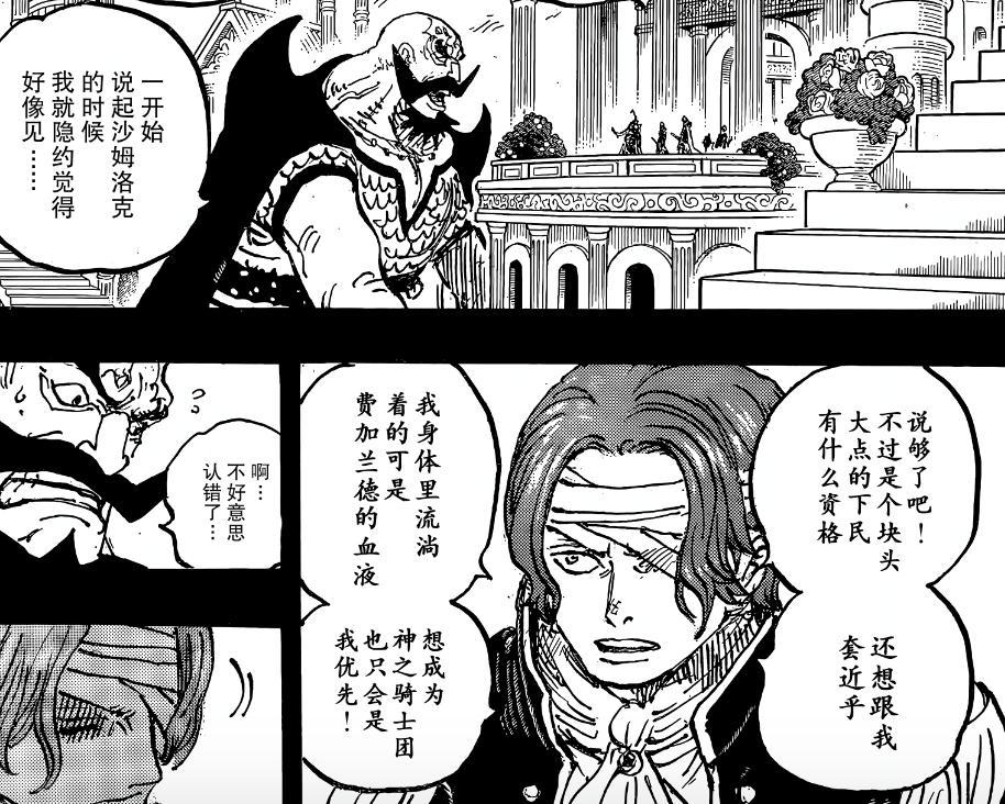 另外很有可能是黑鬍子傷到香克斯後,說出了他的身世之謎。同時也透露出自己的身世是洛克斯之子,而你卻是天龍人加林之子。這讓香克斯很驚訝,結合之前羅傑船長的話,於是來到聖地瑪麗喬亞,開始了臥底之旅。