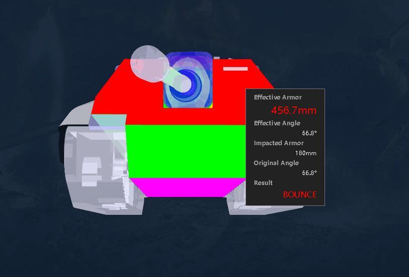 防護上,E90還算得上不錯。由於它的主炮擁有9度俯角和左右各5度的狹小射界,因此它實戰中更傾向於騎坡賣頭作戰。而它的戰鬥室就提供了這樣的底氣:在壓滿俯角的情況下,不僅能把頭包隱藏起來,還能獲得420毫米左右的戰鬥室正面等效,相當堅挺。