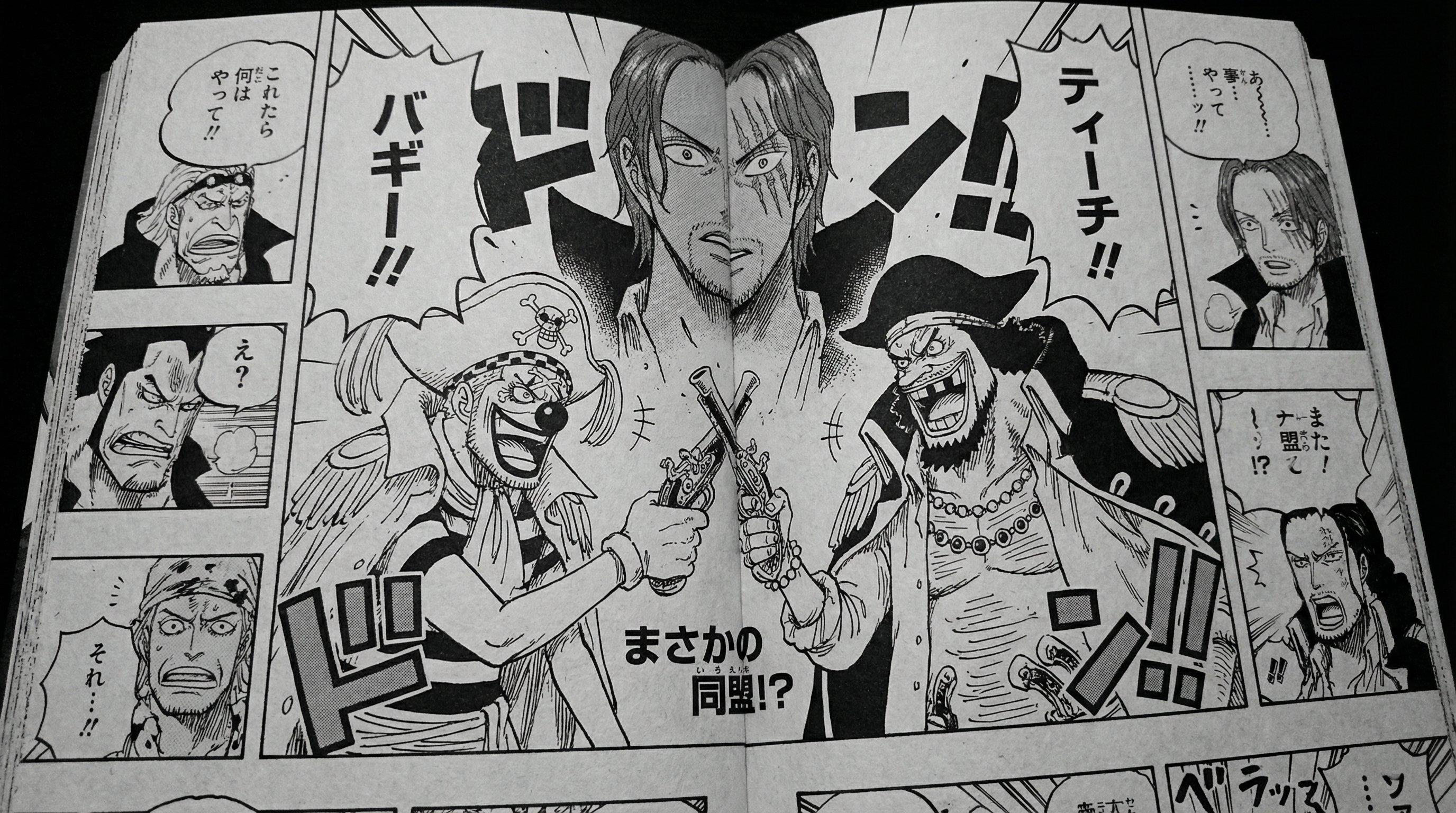 本來香克斯跟黑鬍子會幹架的,但巴基從中游說,也告訴我們黑鬍子和巴基其實是同父異母的兄弟。這個真相也讓香克斯有點意外,那暫時是打不起來了,因爲真正的對手是天龍人,唯有將這個組織徹底消滅。