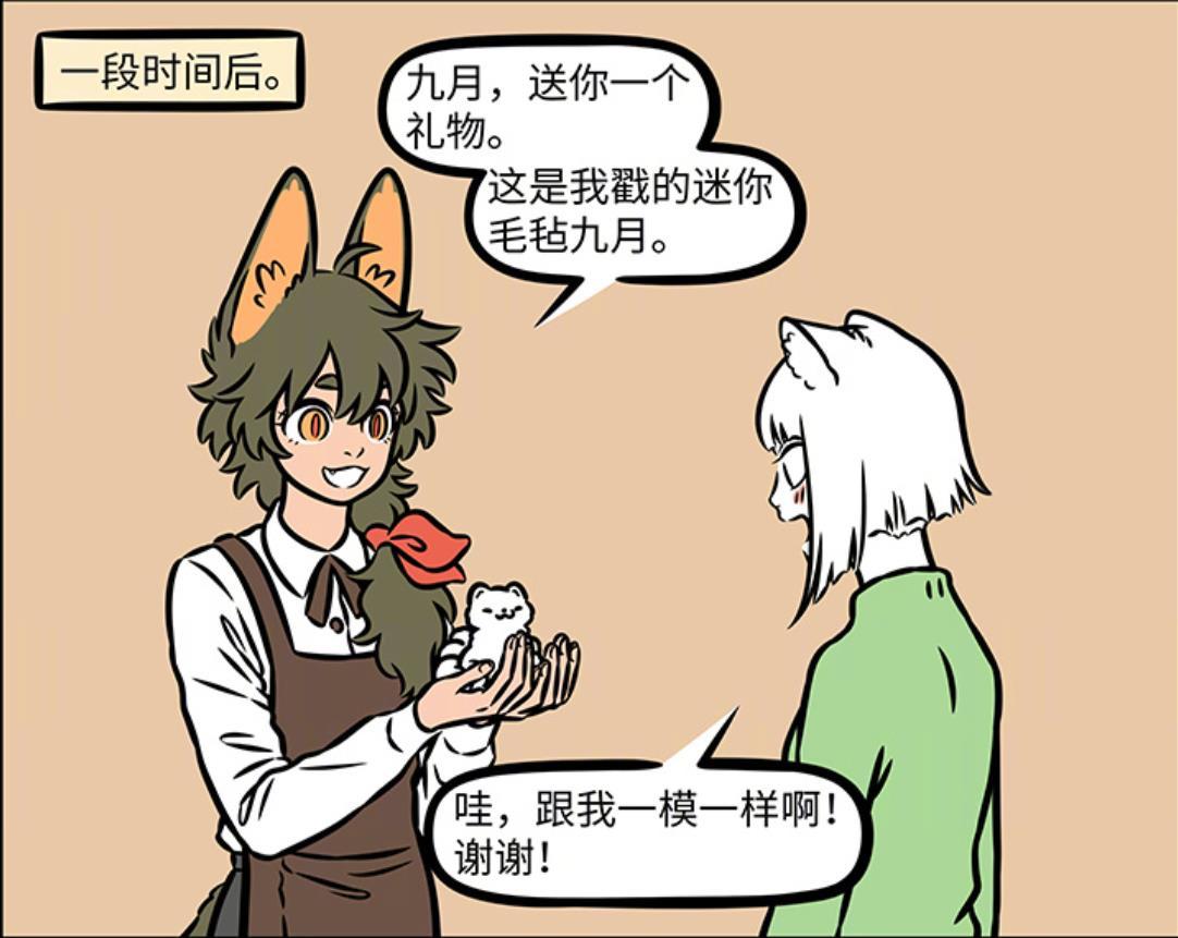 而在一段時間後,瓦陶陶拿了一個自己戳的迷你毛氈送給九月。