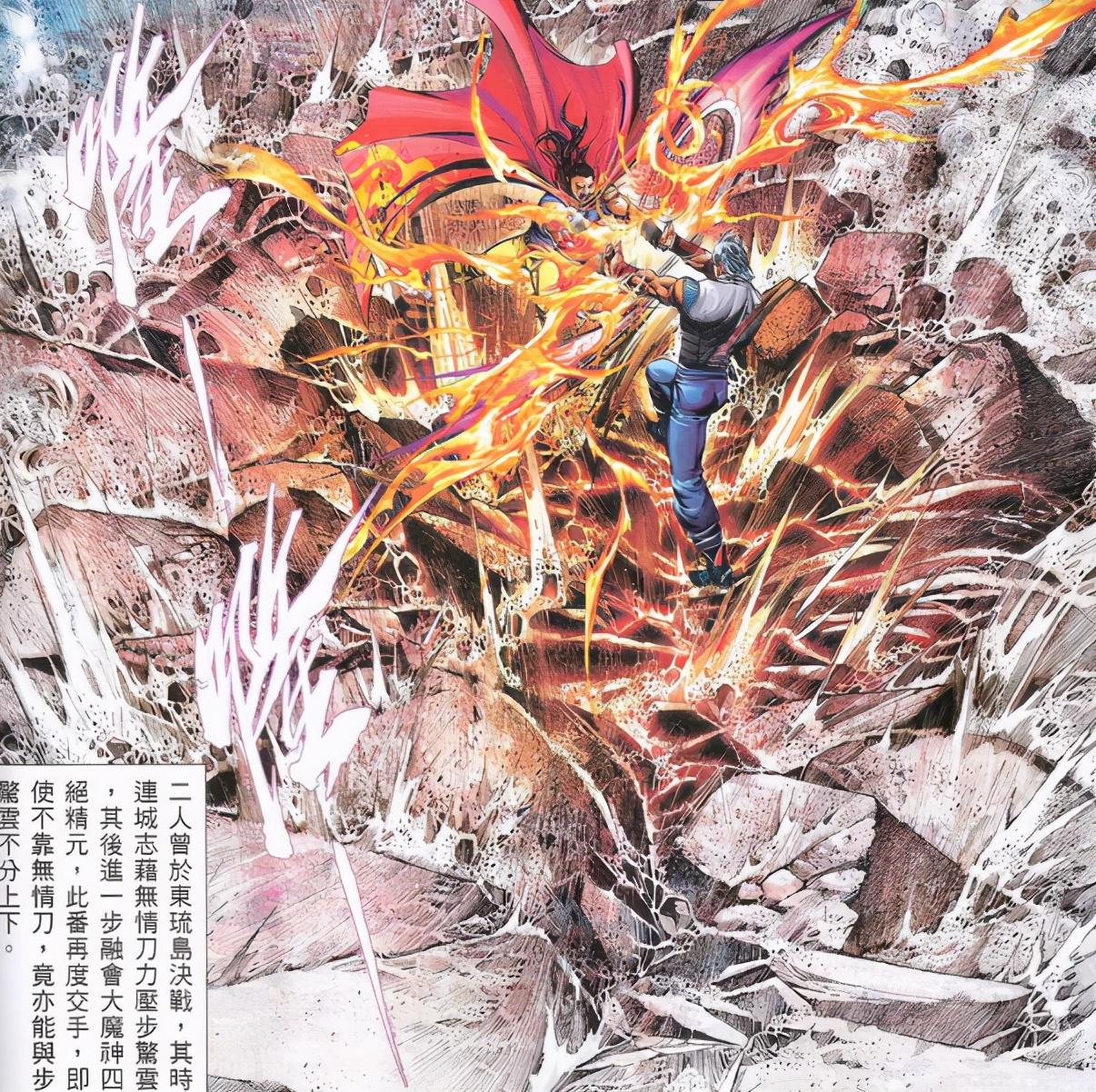 再者,是他的實力被很多人認爲“水分太大”。沒錯,連城志後期很強,赤火神功、無求易決、混天四絕等神功傍身。但仔細一看,他的強大有個致命弱點——嚴重依賴外物,特別是那把“無情刀”。漫畫裏明說,一旦沒了無情刀,他的戰鬥力會暴跌好幾個檔次,別說風雲聯手,連單挑步驚雲都未必能贏。