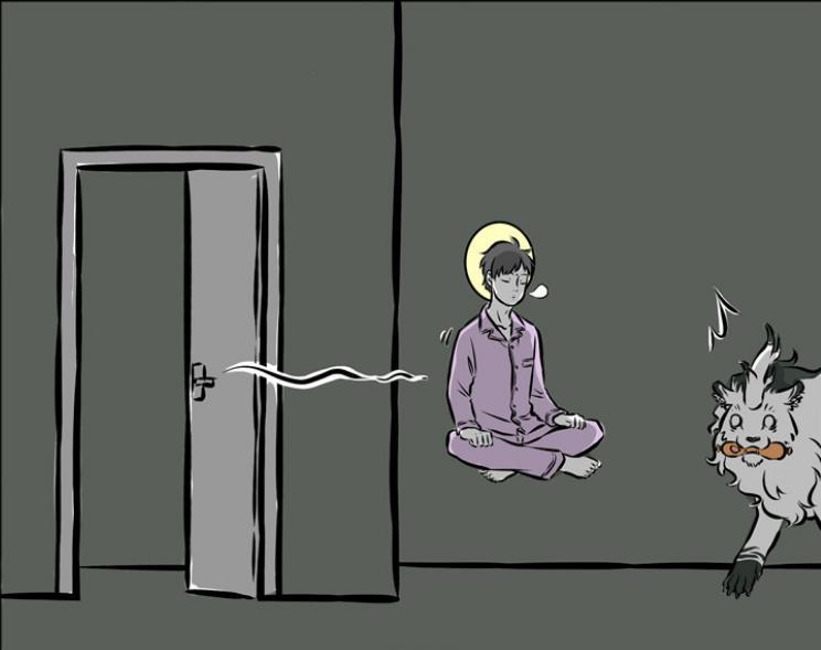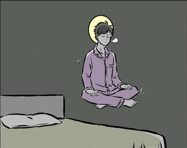 這天大士一如往常在牀上睡覺的,大概是睡得太熟,大士很快就進入夢遊狀態,整個人以坐禪的姿勢懸浮在半空中,看起來還頗有種莊嚴的感覺