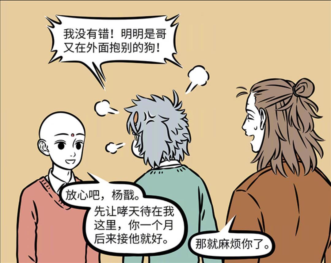 一個月後,楊戩如約來接哮天回家,大概是一個月沒有見面,楊戩多少有些想念哮天,一見面就詢問哮天這段時間過得怎麼樣