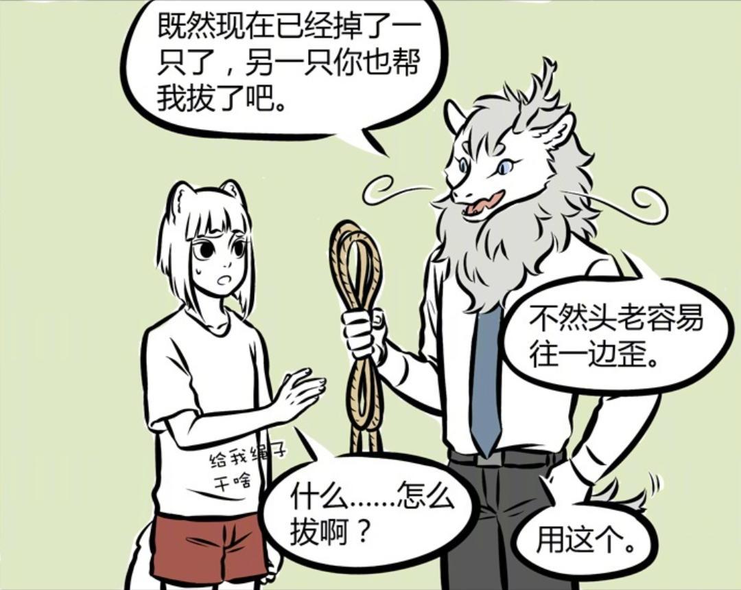 此時的九月還一臉疑惑,緊接着就聽到敖烈表示既然已經掉了一隻,就拜託九月幫自己把另一個給拔掉了,畢竟只有一個角,很容易在平衡上出現問題,頭特別容易往一邊歪斜,唯一的解決辦法就是把另一個角給拔掉,而繩子就是用來拔角的。