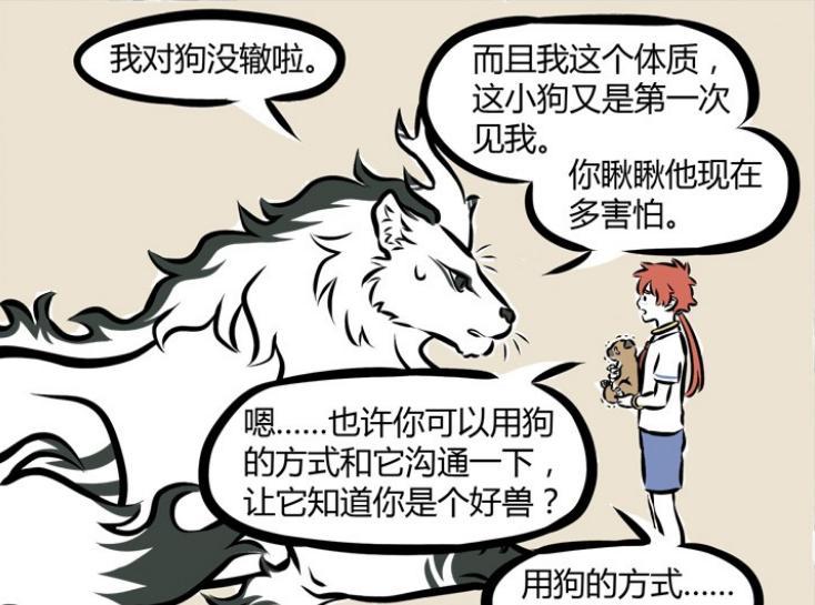 大概覺得紅孩兒這麼說有道理,因此白澤還真的嘗試用狗的方式和小狗交流。