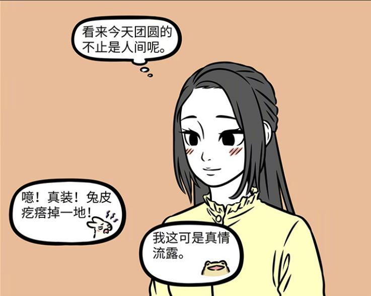 看着十分懂事的金蟾和玉兔,嫦娥忍不住感慨今天團圓的可不止人間,完全沉浸在溫馨的氛圍中