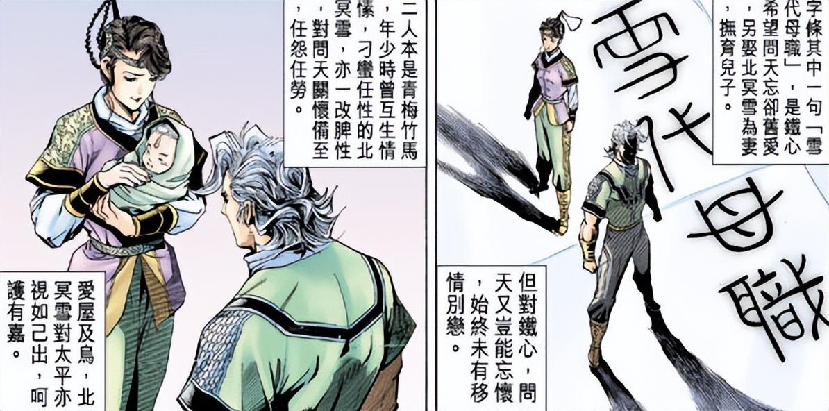 回顧兩人的軌跡:少年時期,北冥雪雖有情意,但問天更像塊“榆木疙瘩”,未曾明確回應,更多似兄妹之誼。後來經歷誤會、家族鉅變,兩人各有際遇,情感並未如與鐵心那般經歷生死癡纏的淬鍊。乃至最終結合,劇情安排也略顯突兀,夾雜着鐵心“託付”的意味,以及給兒子一個完整家庭的現實考量。