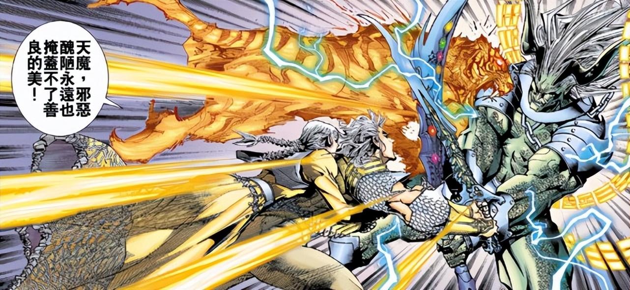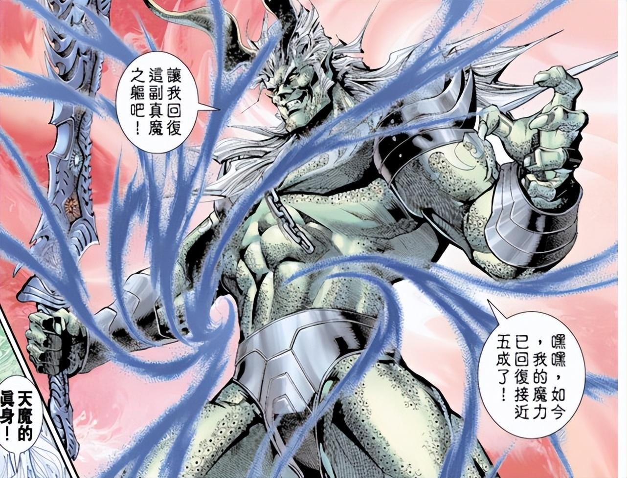 天魔爲掙脫玄天巨網,佈局千年,分化出魔珠、魔兵、異魔等諸多分身。雖然最終成功脫困,但這個過程也極大地損耗和分散了他的本源力量。漫畫中明確提到,天魔另一半的核心力量,早已隨魔胎(即後來的南宮太平)分離出去。因此,降臨人間的天魔,實力頂多只有巔峯時期的五成左右。一個半血狀態的終極BOSS,雖然依舊能碾壓絕大多數高手,但已不再是那個“除了元始天尊無人可敵”的絕對無敵存在。這爲問天創造了最基本的“可擊敗”條件。