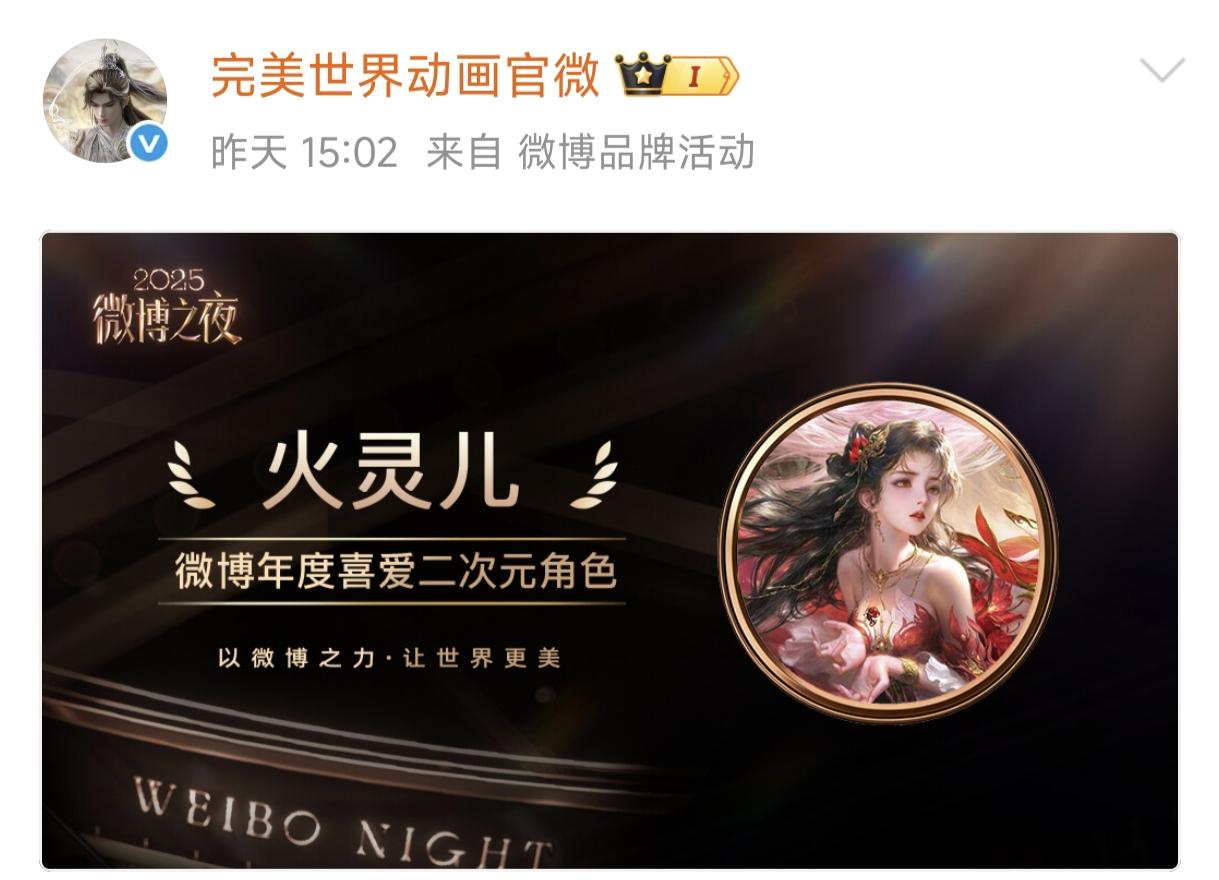 導讀:就在近期,《完美世界》的女主之一,火靈兒以超人氣姿態登榜2025微博之夜最喜歡的女角色TOP1。