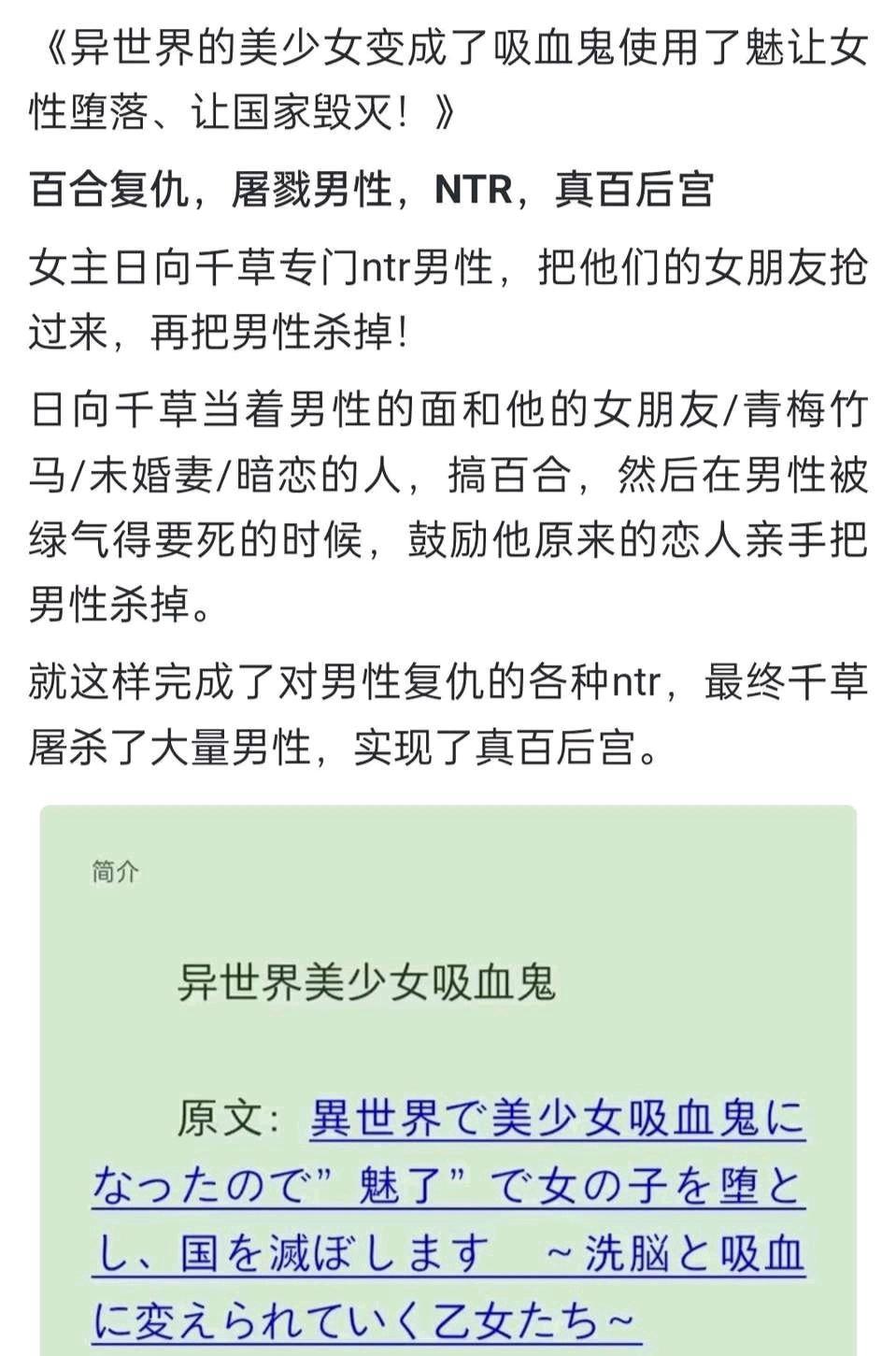 你們想,一個日本男作者,都成爲國內某些極端女拳的精神圖騰,很難想象,這作者的作品是一個什麼精神狀態。