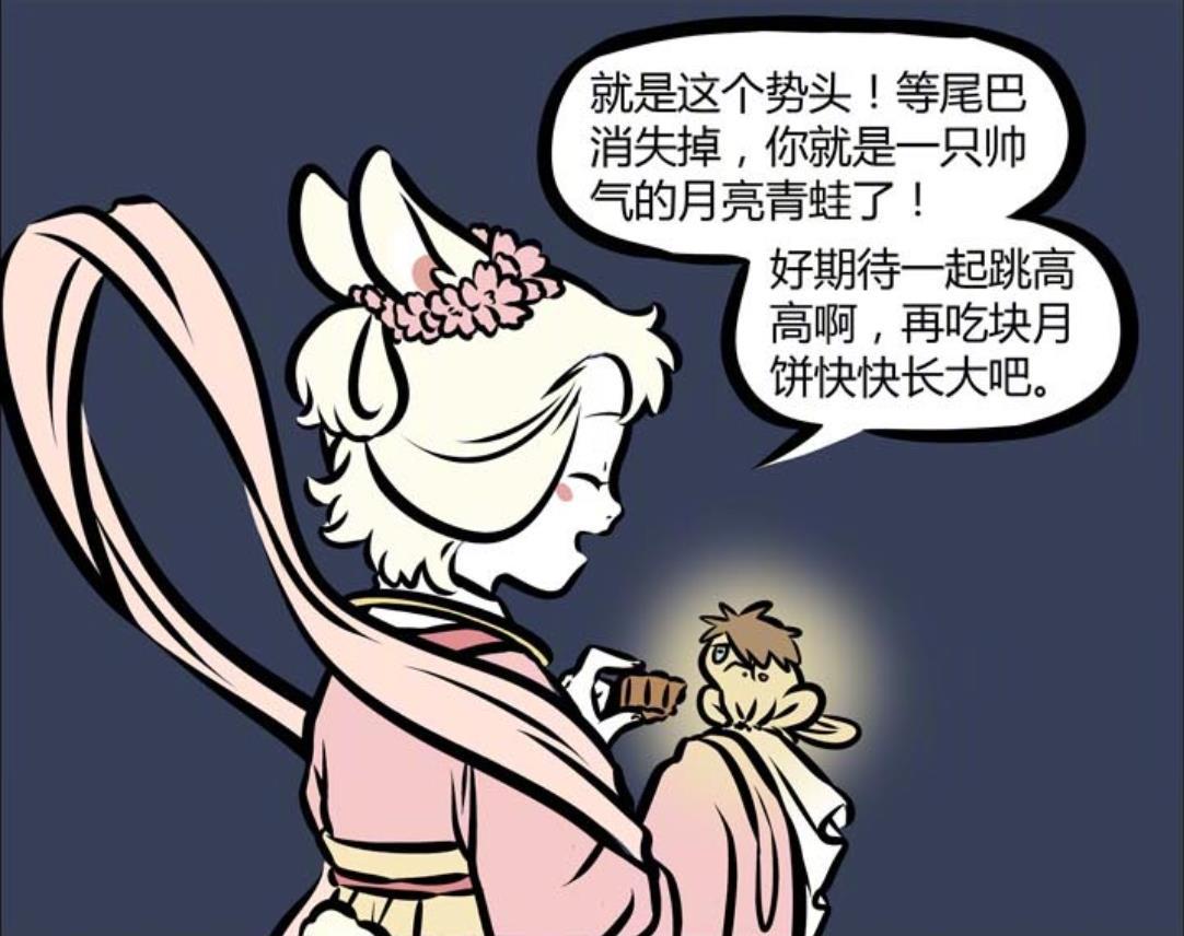 此時她的手中拿着月餅,滿臉興奮地表示依照這個石頭,等尾巴去掉,小青蛙就會變成一隻帥氣的月亮青蛙