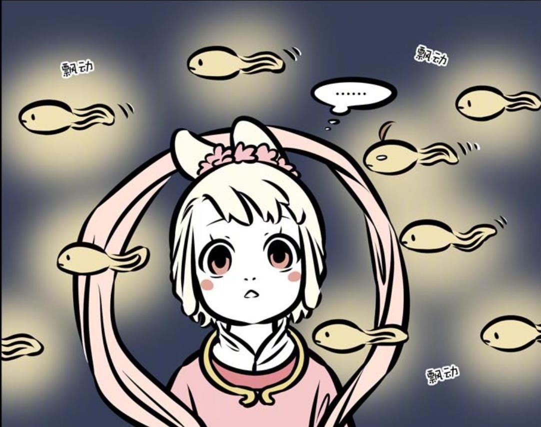 接着就看到小玉走進觀點,發現竟然是一羣閃光的小蝌蚪,這大概是小玉在月球上看到除了嫦娥外的生物,因此小玉忍不住看呆住,腦子裏面似乎在思索着什麼
